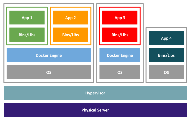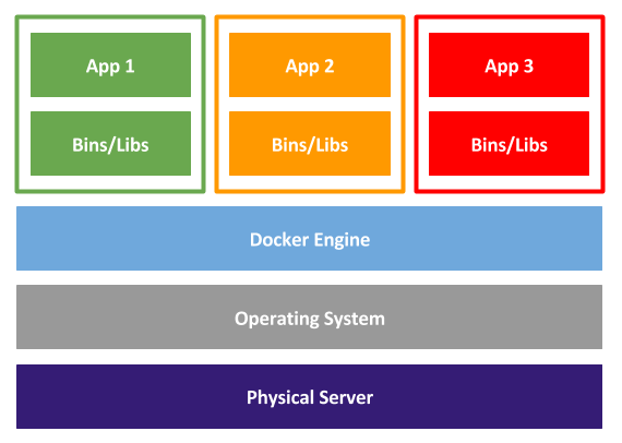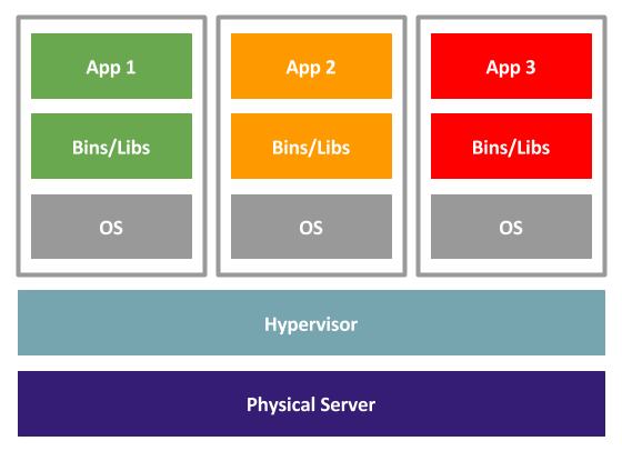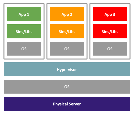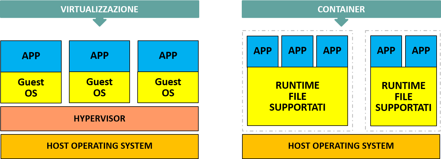 Quando si utilizzano i container, sull’hardware fisico è installato un unico sistema operativo, utilizzato da ciascun container.